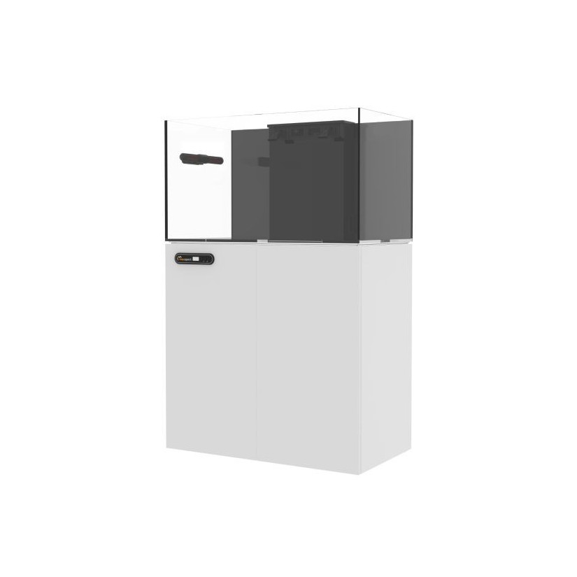 O aquário repousa sobre um móvel de alumínio aeronáutico, conhecido por sua robustez e leveza. Revestido com um revestimento anticorrosivo, este móvel foi projetado para durar no tempo e resistir às condições de umidade do ambiente aquático. Painéis de acabamento em PVC impermeável adicionam um toque de sofisticação ao mesmo tempo que garantem proteção ideal contra água.