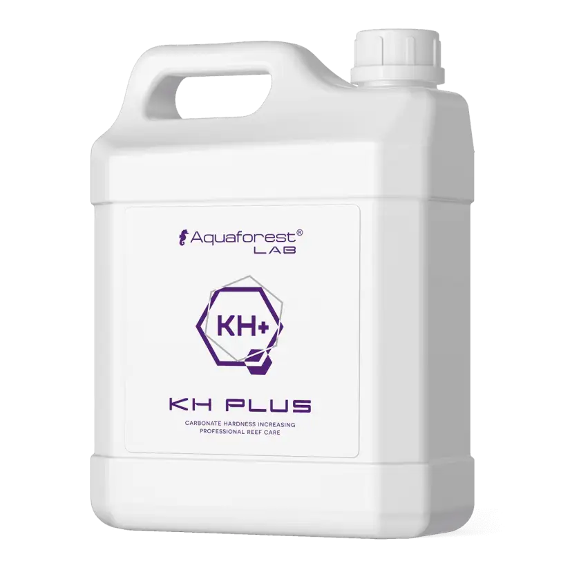Solução para aumentar a dureza carbonática em aquários marinhos. KH Plus foi criado para suprir a escassez e quedas repentinas nos níveis de dureza carbonática e restaurar o equilíbrio iônico no aquário. Um nível adequado de íons carbonato é necessário para o crescimento e manutenção dos corais em boa saúde, bem como para a construção de esqueletos. Devido à presença de íons carbonato, isso também pode melhorar a estabilidade do pH.