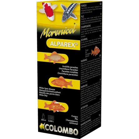 O Colombo Alparex foi projetado para atacar parasitas invisíveis, como Ichthyobodo, Chilodonella e Trichodina. Estes parasitas, muitas vezes difíceis de detectar a olho nu, podem causar irritação grave e infecções nos peixes. Graças à Alparex, estas ameaças são rapidamente neutralizadas, permitindo que os seus peixes recuperem o seu bem-estar num instante.