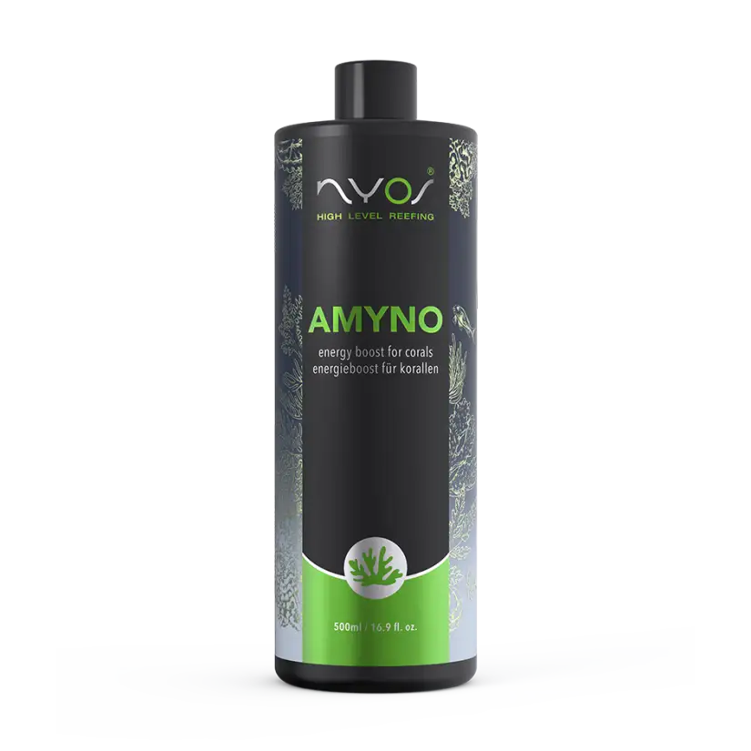 Nyos® AMYNO é uma solução biológica completa para corais , desenvolvida durante um longo período em colaboração com as principais fazendas de corais. Contém aminoácidos, vitaminas, carboidratos e outros micronutrientes orgânicos que estimulam o metabolismo dos corais. É composto por cerca de 40 ingredientes individuais e foi especialmente desenvolvido para ser utilizado em SPS, LPS, corais moles, zoanthus e gorgónias.