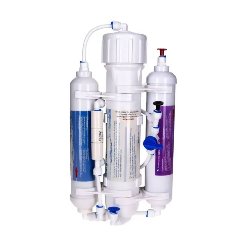 Este modelo é fornecido com todos os acessórios essenciais: mangueira de 5 m , torneira autoperfurante , conector de esgoto e chave de desmontagem . Leva apenas alguns minutos para configurar e começar a produzir água de aquário perfeitamente pura.