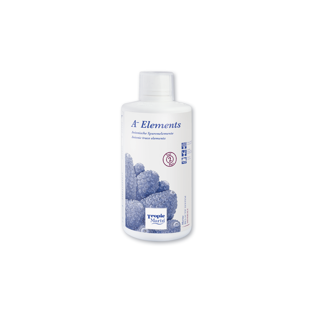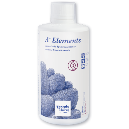 Tropic Marin ® A-ELEMENTS é um suplemento de oligoelementos aniônicos e catiônicos para aquários de água salgada. Tropic Marin ® A-ELEMENTS contém bromo , flúor , iodo , lítio , vanádio , molibdênio e selênio em uma forma puramente mineral.