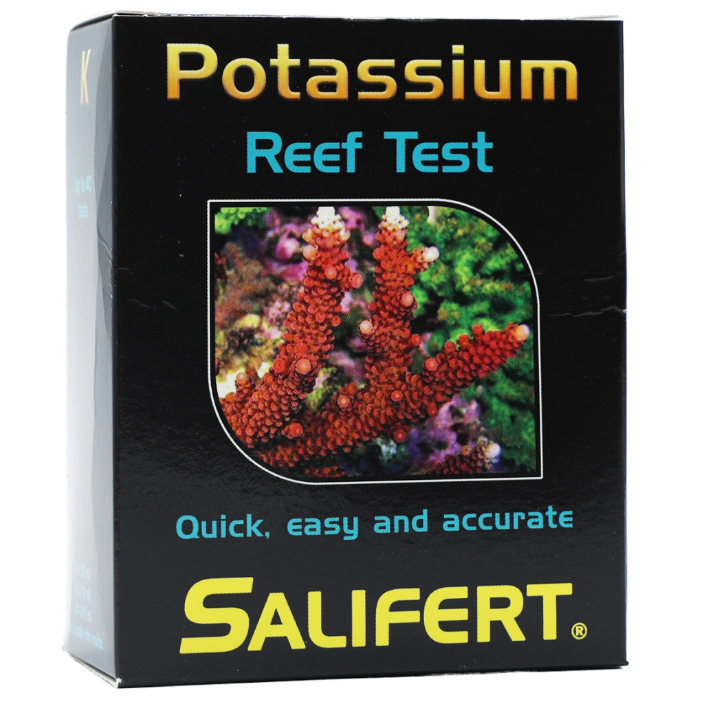 Potassium / Kalium Profi Test da Salifert é um kit de teste que mede com precisão o nível de potássio no seu aquário de água do mar . O teste pode ser realizado de forma fácil e rápida, em aproximadamente 90 segundos.