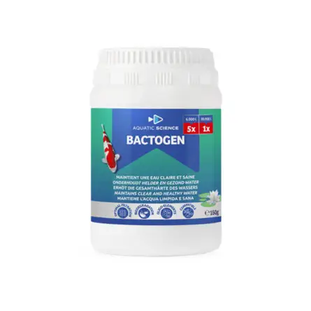 Bactogen 6000 vsebuje široko paleto sporotvornih bakterijskih sevov, prilagojenih za preživetje in učinkovito delovanje pri temperaturah do 10 °C. Z združevanjem teh bakterij z naravnimi minerali in elementi v sledovih podpira celotno biološko filtracijsko verigo , izboljšuje bistrost vode in ravnovesje v ribniku. Redna uporaba omejuje nabiranje blata in organskih usedlin, hkrati pa spodbuja zdravo okolje za ribe in rastline ter zagotavlja stabilno in kristalno čisto vodo.