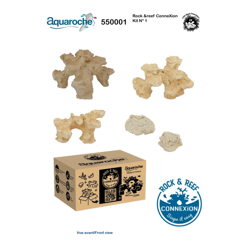 Rock&Reef ConneXion je zabaven pristop k ustvarjanju lastne dekoracije za akvarij. Vsak komplet je sestavljen iz 3 medsebojno povezljivih modulov , 1 okrogle skale in 1 ploščate skale, ki vam omogočajo, da ustvarite majhen dekor za nano akvarij . Samo dodajte dodaten komplet za razširitev dekorja!