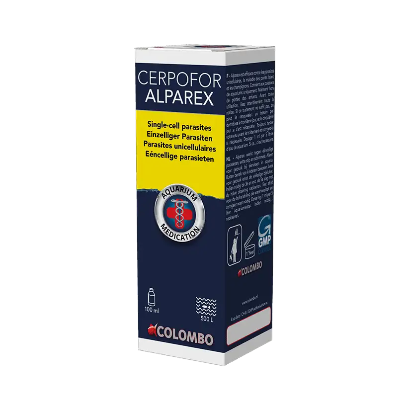 Colombo Cerpofor Alparex je znan po svoji sposobnosti boja proti različnim zunanjim parazitom, ki škodijo zdravju rib. Ne glede na to, ali gre za Ichtyobodo, Chilodinella ali Trichodina, to zdravljenje deluje ciljno na izkoreninjenje nevidnih groženj. Poleg tega skrbi za bolezen belih peg, ki se je akvaristi pogosto bojijo, in učinkovito odpravlja glivice ter zagotavlja zdrav življenjski prostor.