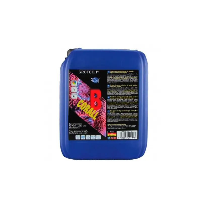 Corall B 5000 ml je raztopina elementov v sledovih , ki vsebuje magnezij, železo, krom, mangan, nikelj, kobalt, baker.