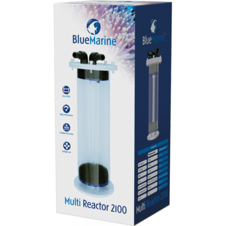 Blue Marine Multi Reactor 2100 je zasnovan za večje akvarije, ki zahtevajo močnejšo in ciljno usmerjeno filtracijo. Z notranjo prostornino 3,5 l lahko sprejme velike količine filtrirnega medija za globinsko čiščenje vode. Vanj lahko dodate aktivno oglje za odstranjevanje nečistoč, smole proti nitratom ali fosfatom za stabilizacijo parametrov ali celo biološke medije za povečanje bakterijske populacije. Je celovita, učinkovita in zelo prilagodljiva rešitev.