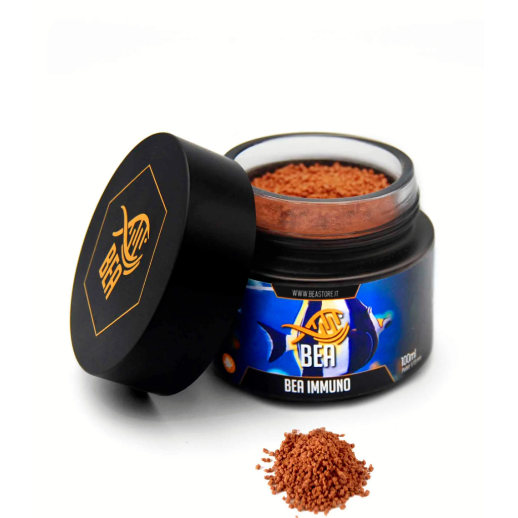 BEA - Immuno - Imunostimulirajoče granule 100 ml so vrhunska potapljajoča se hrana, zasnovana za učinkovito izboljšanje zdravja akvarijskih rib. Njena ultra popolna formula združuje vrhunske morske sestavine, rastlinske izvlečke, makroalge, probiotike in naravne antioksidante za podporo imunske obrambe, zlasti v obdobjih stresa, pri naselitvi novih rib ali po zdravljenju. Bogata je s fitosteroli, polifenoli, flavonoidi, vitamini in esencialnimi maščobnimi kislinami in deluje kot pravi prehranski ščit. Na voljo je v 1,3 mm potapljajočih se granulah in je primerna za večino morskih in sladkovodnih rib. Koncentrirana, prebavljiva in brez kemičnih dodatkov nudi ciljno usmerjeno podporo, hkrati pa spodbuja optimalno absorpcijo.