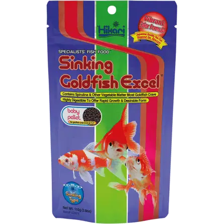 Sinking Goldfish Excel Baby s 110 g formatom je popoln za vsakodnevno uporabo ali kot dopolnilo k drugi hrani. Ta izdelek, primeren za mlade zlate ribice in majhne koije, zagotavlja njihovo dolgoročno rast in dobro počutje.