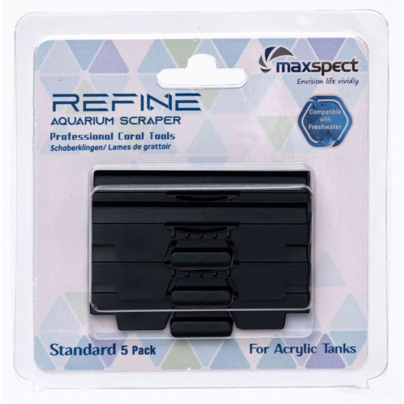 Paket 5 nadomestnih rezil ABS (za akrilni akvarij) za Maxspect Refine Standard Aquarium Scraper. Ta rezila se lahko uporabljajo samo za akrilne akvarije.