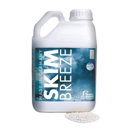 Skim Breeze je poseben granulat za beljakovinske skimmerje , ki čisti vsesani zrak in preprečuje vnos škodljivih plinov, kot sta CO2 ali cigaretni dim. Njegova formula združuje visokokakovostne zeolite in druge aktivne sestavine za maksimiranje adsorpcije, hkrati pa preprečuje izsušitev granulata. Rezultat: stabilnejši pH in opazno zmanjšanje rasti alg, kar omogoča koralam bolj zdrav in hiter razvoj.