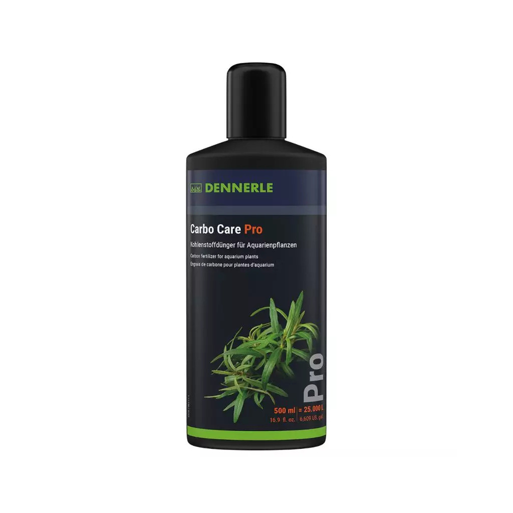 Carbo Care Pro 500 ml podjetja Dennerle je koncentrirano ogljikovo gnojilo za akvarijske rastline. Je dobra alternativa sistemom gnojil CO2, ogljik je najpomembnejše hranilo za lepe in zdrave rastline. Poveča konkurenčno moč rastlin proti nezaželenim algam.