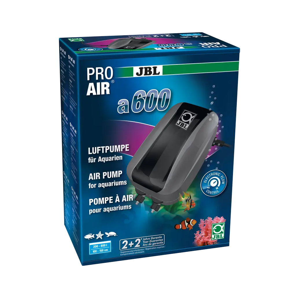 JBL ProAir a600 je zasnovan tako, da zagotavlja optimalno difuzijo kisika v vodi, kar je bistvenega pomena za dobro počutje rib in koristnih bakterij. Njegov visok pretok 600 l/h zlahka napaja enega ali dva difuzorja, hkrati pa vzdržuje stabilen zračni tlak nad 160 mbar . Je idealna rešitev za izboljšanje prezračevanja, podporo biološki filtraciji ali dopolnitev obstoječega sistema. Kot nadomestni del se brezhibno integrira v obstoječo opremo.