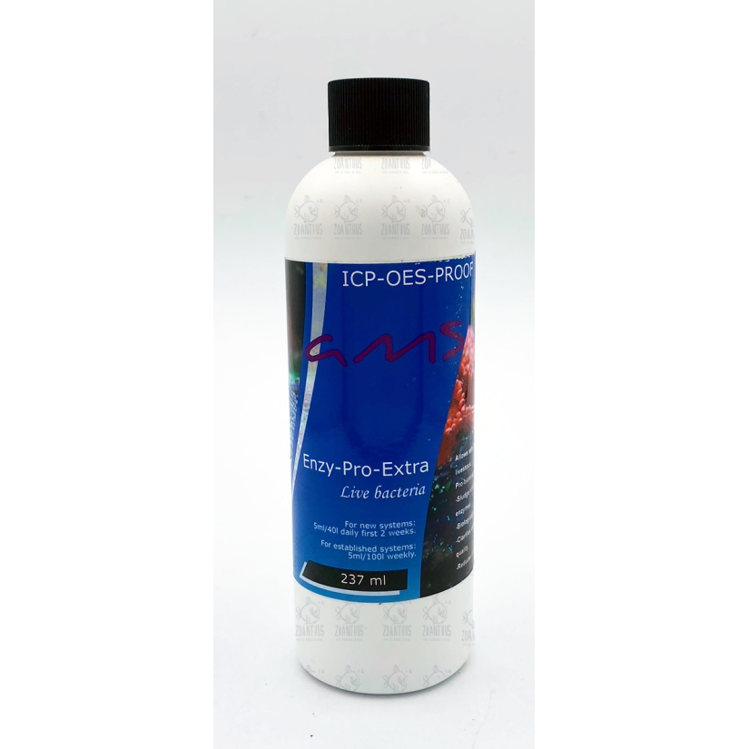 Enzy-pro-extra 237 ml från AMS är en lösning som angriper organiskt avfall som samlats i systemet . Det kommer att lösa upp detta avfall och göra det tillgängligt igen för skimmern . Verkar probiotiskt mot lätta eller framväxande cyanobakterier.
