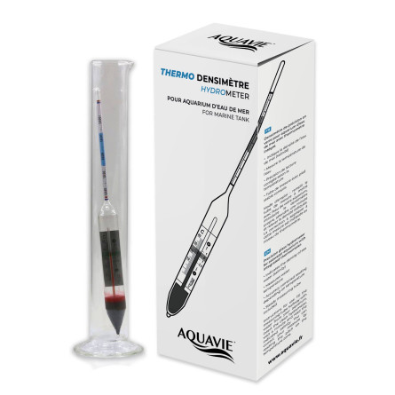 AQUAVIE Thermo Densimeter är den oumbärliga allierade för alla akvarieentusiaster. Tack vare sin imponerande precision och integrerade termometer kan du enkelt övervaka salthalten och temperaturen i ditt akvarium. Tillverkad av högkvalitativt glas garanterar den en tillförlitlig och tydlig avläsning av de parametrar som är viktiga för dina korallers och fiskars hälsa. Lätt att använda och levereras med ett stabilt provrör för praktisk användning vid varje mätning. Oavsett om du är nybörjare eller expert kommer detta verktyg snabbt att bli en reflex för att upprätthålla en hälsosam och balanserad marin miljö .