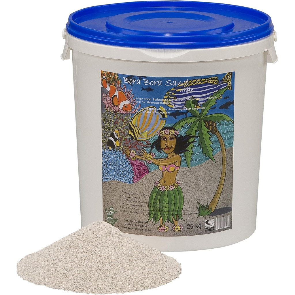 Bora Bora-sand är tillverkad av mycket ren bergart och släpper inte ut nitrater, fosfater eller silikater. Den består till stor del av kalcium och magnesium och berikar vattnet med kalcium- och magnesiumkarbonater och bikarbonater (mätt med TAC - eller KH i Tyskland).