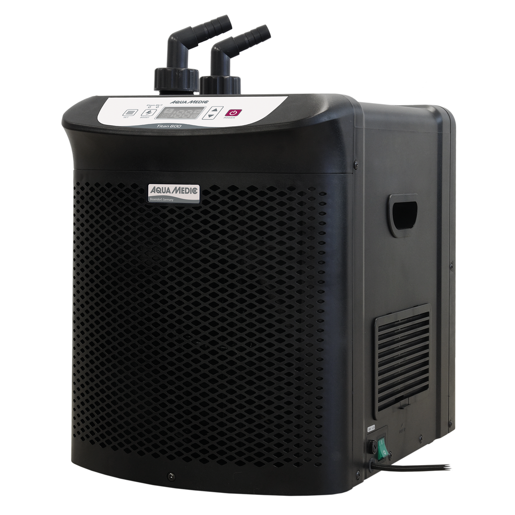 Aqua Medic Titan 600 upprätthåller en stabil och säker akvarietemperatur, även på sommaren. Dess värmeväxlare i 100 % titan är oöverträffat resistent mot havsvatten, medan den digitala styrenheten exakt justerar temperaturen mellan 3 °C och 32 °C. Den är designad för akvarier upp till 750 liter och levererar 600 W kyleffekt för att snabbt sänka temperaturen, samtidigt som den förblir ekonomisk och tillförlitlig . Dess diskreta PVC/ABS- hölje integreras enkelt i ett vardagsrum eller under ett skåp. Köldmediet R134a används i enlighet med gällande föreskrifter. Kopplingar ingår för enkel installation . Cirkulationspump säljs separat.