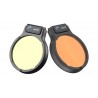 Två filter till Pastel Reef Magnifier storlek L för att underlätta fotografering av koraller i blått ljus . Filtren fästs enkelt på förstoringsglaset.